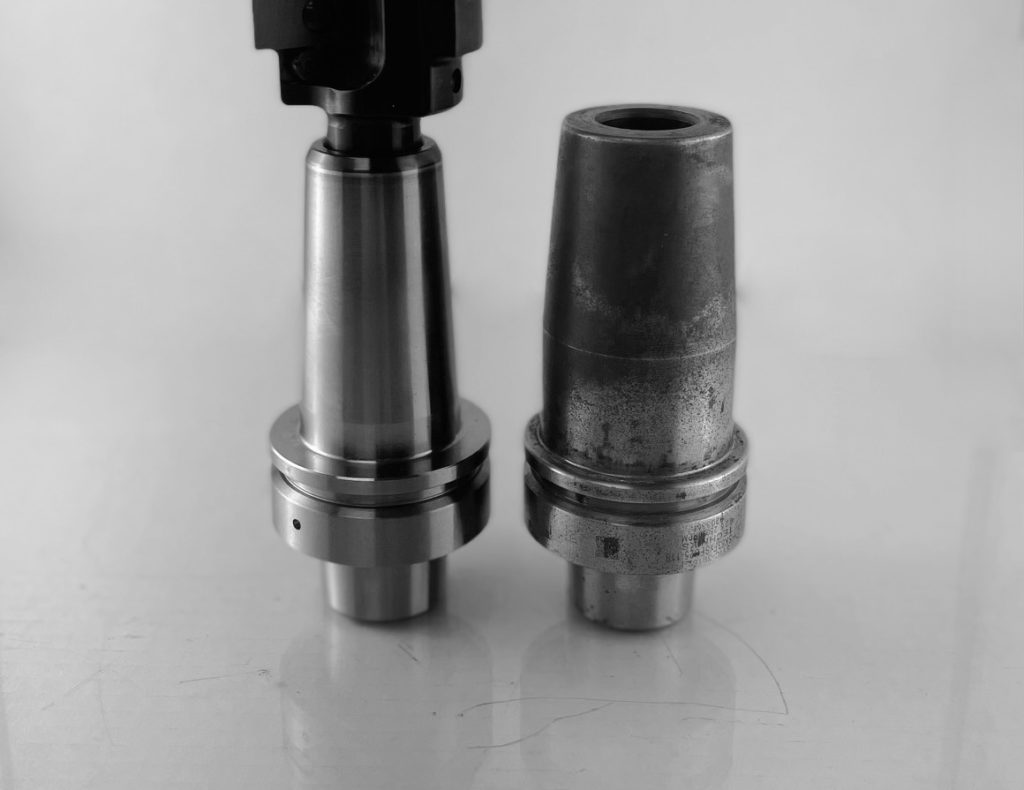 On the right, by contrast, is a generic tool holder produced in Southeast Asia. Its bulky shaft and oversized diameter—8mm larger—add unnecessary weight. That extra mass places undue stress on your CNC spindle bearings, potentially accelerating wear and leading to expensive repairs or premature replacement.